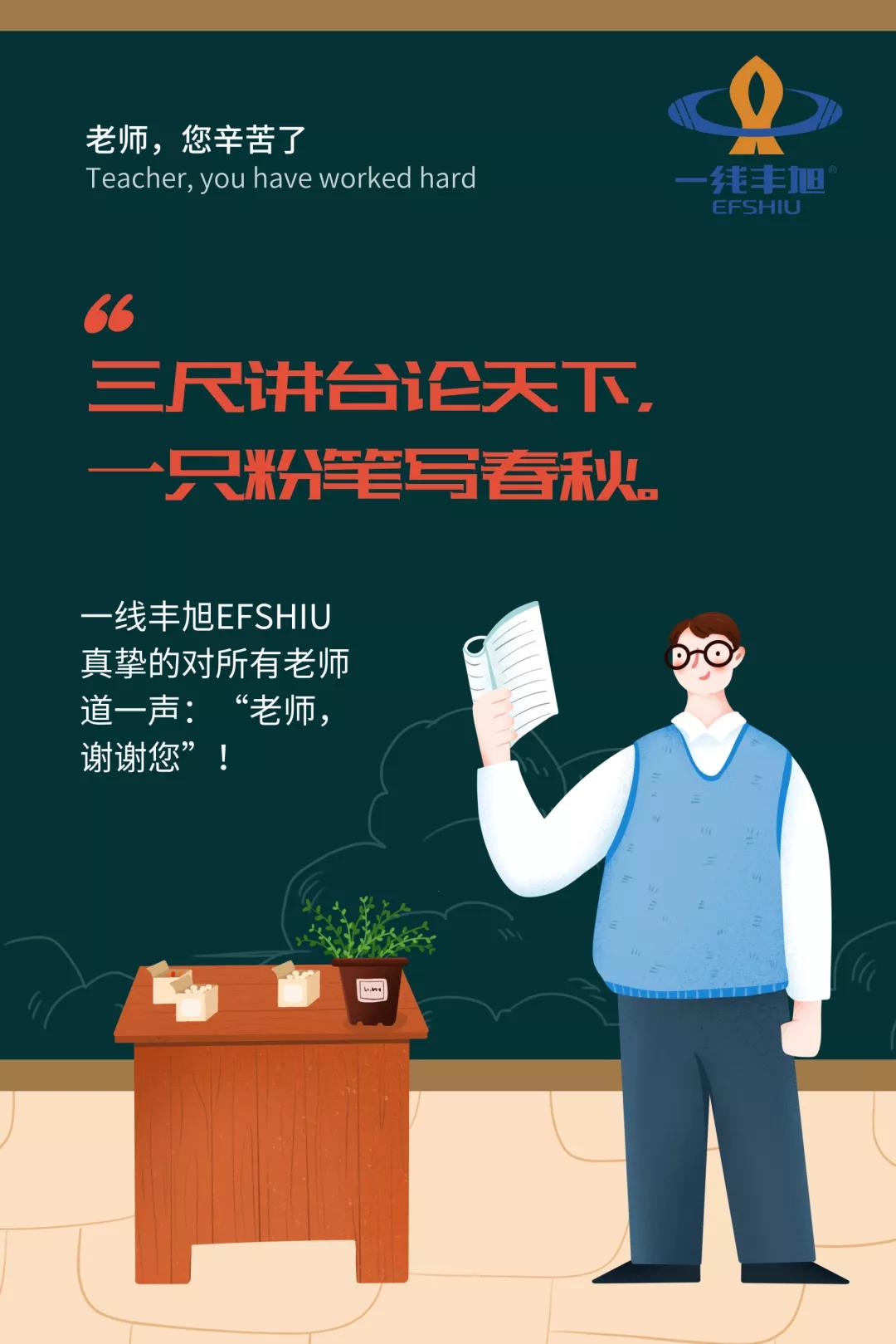 老師,似乎是我們?nèi)松杏龅降淖钐貏e的一群人。 有人說(shuō)“一個(gè)人遇到好老師是人生的幸運(yùn),一個(gè)學(xué)校擁有好老師是學(xué)校的光榮,一個(gè)民族源源不斷涌現(xiàn)出一批又一批好老師則是民族的希望”。老師,是我們的筑夢(mèng)者,引路人! 龍應(yīng)臺(tái)在《目送》中這樣寫(xiě)親子關(guān)系: 師生一場(chǎng),又何嘗不是這樣? 我們從一個(gè)學(xué)校離開(kāi),進(jìn)入人生下一個(gè)階段,獨(dú)自踏上新的旅程;老師們則留下來(lái),帶領(lǐng)一屆又一屆的新鮮面孔繼續(xù)前行。 揮淚告別時(shí),我們口中的“師恩難忘”是真的;時(shí)光流逝,我們也不免與曾經(jīng)熟識(shí)的老師漸行漸遠(yuǎn)。 一紙薄箋,無(wú)以承載我們深深的祝福, 千言盛贊,不能融盡我們濃濃的敬意。 又到教師節(jié),你想起了哪位老師? 打個(gè)電話,或者發(fā)條微信,亦或是給他來(lái)一段視頻通話說(shuō)聲祝福吧。 一線豐旭EFSHIU網(wǎng)絡(luò)線,愿為您聯(lián)通空間的距離,使您能對(duì)恩師道聲: “老師,謝謝您!”