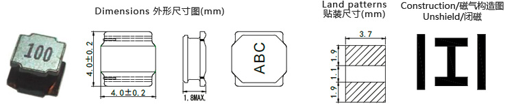 額定電流(A) | | NR4018-1R0N | 100KHz,0.25V | 1.00 | ±30 | 0.029 | 4.50 | | NR4018-1R5N | 100KHz,0.25V | 1.50 | ±30 | 0.041 | 3.35 | | NR4018-2R2M | 100KHz,0.25V | 2.20 | ±20 | 0.055 | 2.70 | | NR4018-3R3M | 100KHz,0.25V | 3.30 | ±20 | 0.088 | 2.45 | | NR4018-4R7M | 100KHz,0.25V | 4.70 | ±20 | 0.113 | 1.70 | | NR4018-5R6M | 100KHz,0.25V | 5.60 | ±20 | 0.129 | 1.60 | | NR4018-6R8M | 100KHz,0.25V | 6.80 | ±20 | 0.155 | 1.45 | | NR4018-100M | 100KHz,0.25V | 10.0 | ±20 | 0.250 | 1.30 | | NR4018-150M | 100KHz,0.25V | 15.0 | ±20 | 0.335 | 0.94 | | NR4018-220M | 100KHz,0.25V | 22.0 | ±20 | 0.488 | 0.80 | | NR4018-330M | 100KHz,0.25V | 33.0 | ±20 | 0.700 | 0.65 | | NR4018-470M | 100KHz,0.25V | 47.0 | ±20 | 0.945 | 0.57 |